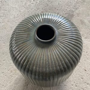 Blue Pakarang vase showcases a stunning cracked glaze texture with gentle ridges, evoking the appearance of sea coral. Its captivating blend of blue and white hues creates a serene, oceanic feel, perfect for adding a unique touch to any decor. Measuring approximately 20 cm in diameter and 18 cm in height, this vase is ideal for small arrangements or as a decorative accent on its own. The intricate surface pattern and organic shape reflect the skilled craftsmanship and natural inspiration behind this piece. It’s a beautiful addition for those who appreciate artisanal and nature-inspired designs.
